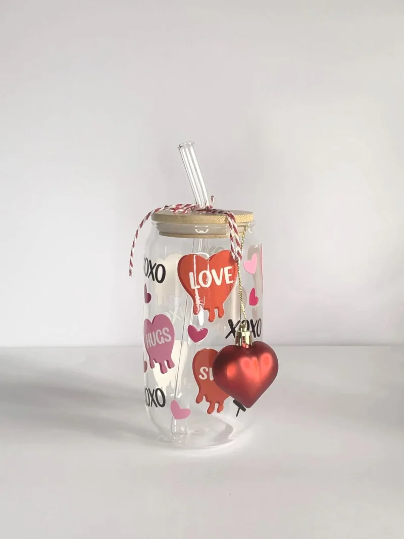 Tumbler vetro con cannuccia cuori Love San Valentino